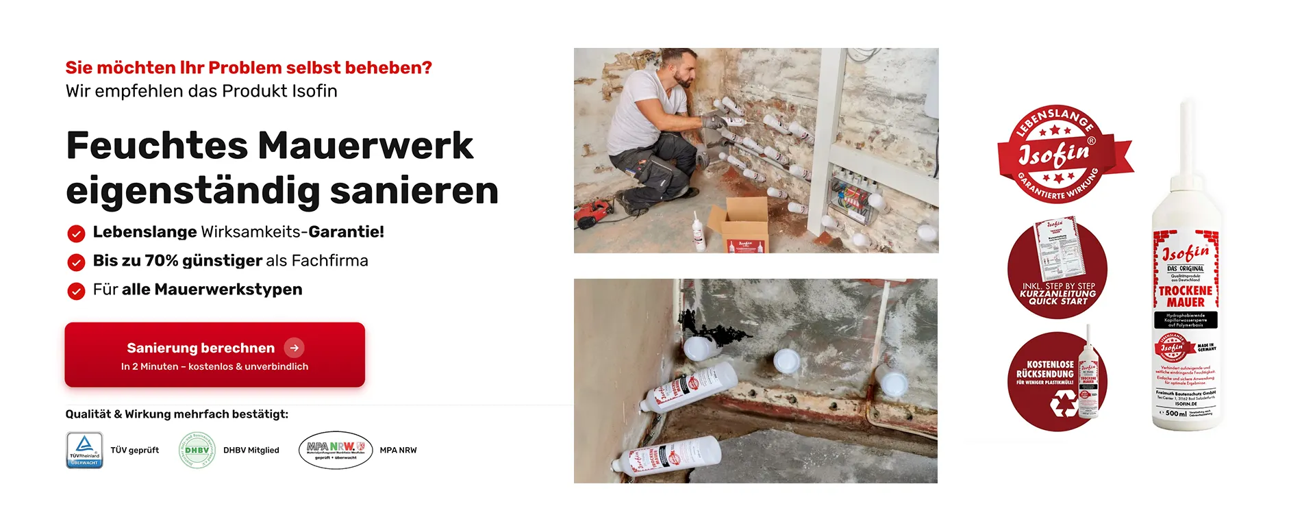 Jetzt als Hausbesitzer bei feuchten Wänden in nur 60 Sek. kostenlos bis zu 3 Angebote einholen, vergleichen und so die beste Fachfirma in Ihrer Nähe finden.