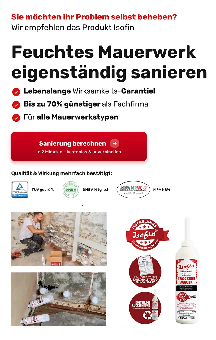 Gerne unterstützen wir auch Sie. Klicken Sie dazu ganz einfach auf den Knopf "Jetzt kostenlos Angebote vergleichen". Füllen Sie dort dann ganz einfach unseren Fragebogen aus. Im Anschluss stellen wir Ihnen bis zu 3 Fachunternehmen aus Ihrer Region zu Seite. Diese beraten Sie und erstellen Ihnen ein passgenaues Angebot zur Abdichtung Ihrer nassen Wände. Im Anschluss können Sie vergleichen und sich eine dieser Fachfirmen für Ihre Sanierung aussuchen.